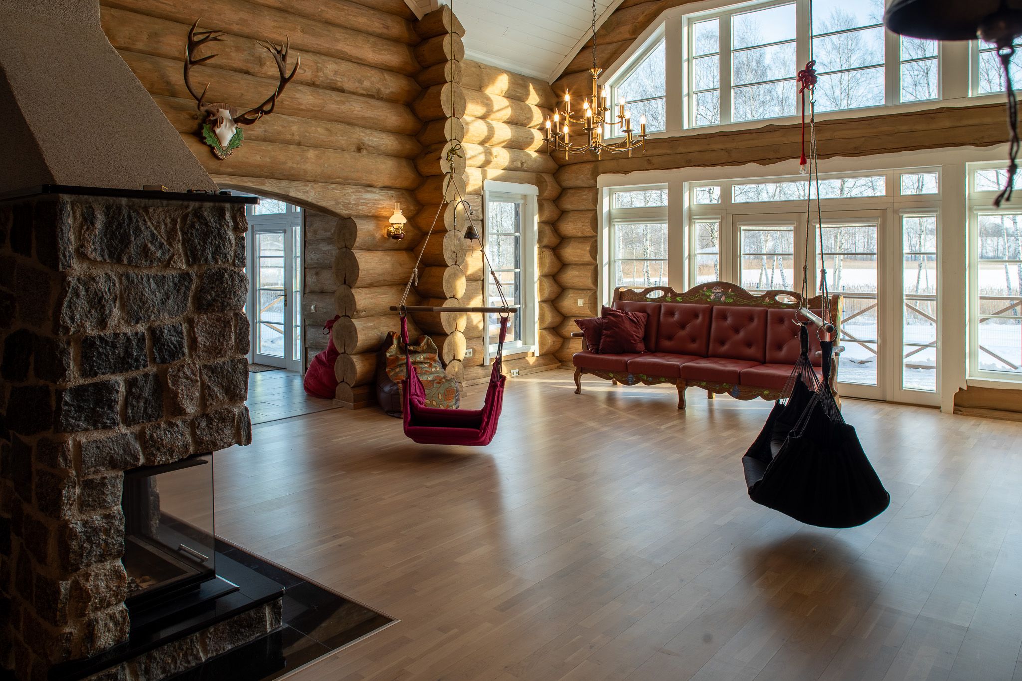 Ezernams Dzintari ir autentiska guļbaļķu māja gleznainā vietā pie ezera, kur dabas miers savienojas ar plašumu un pārdomātu komfortu. Lieli panorāmas logi ielaiž gaismu un atver skatus uz ūdeni un apkārtējo ainavu, radot īpašu tuvības sajūtu dabai visos gadalaikos.