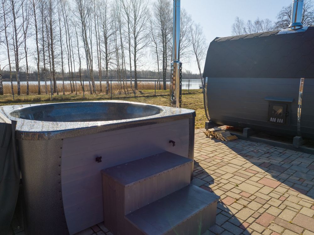 Malkas pirts un āra kubls — ideāla atpūta pēc aktīvas dienas pie ezera. Pieejams par papildu samaksu.